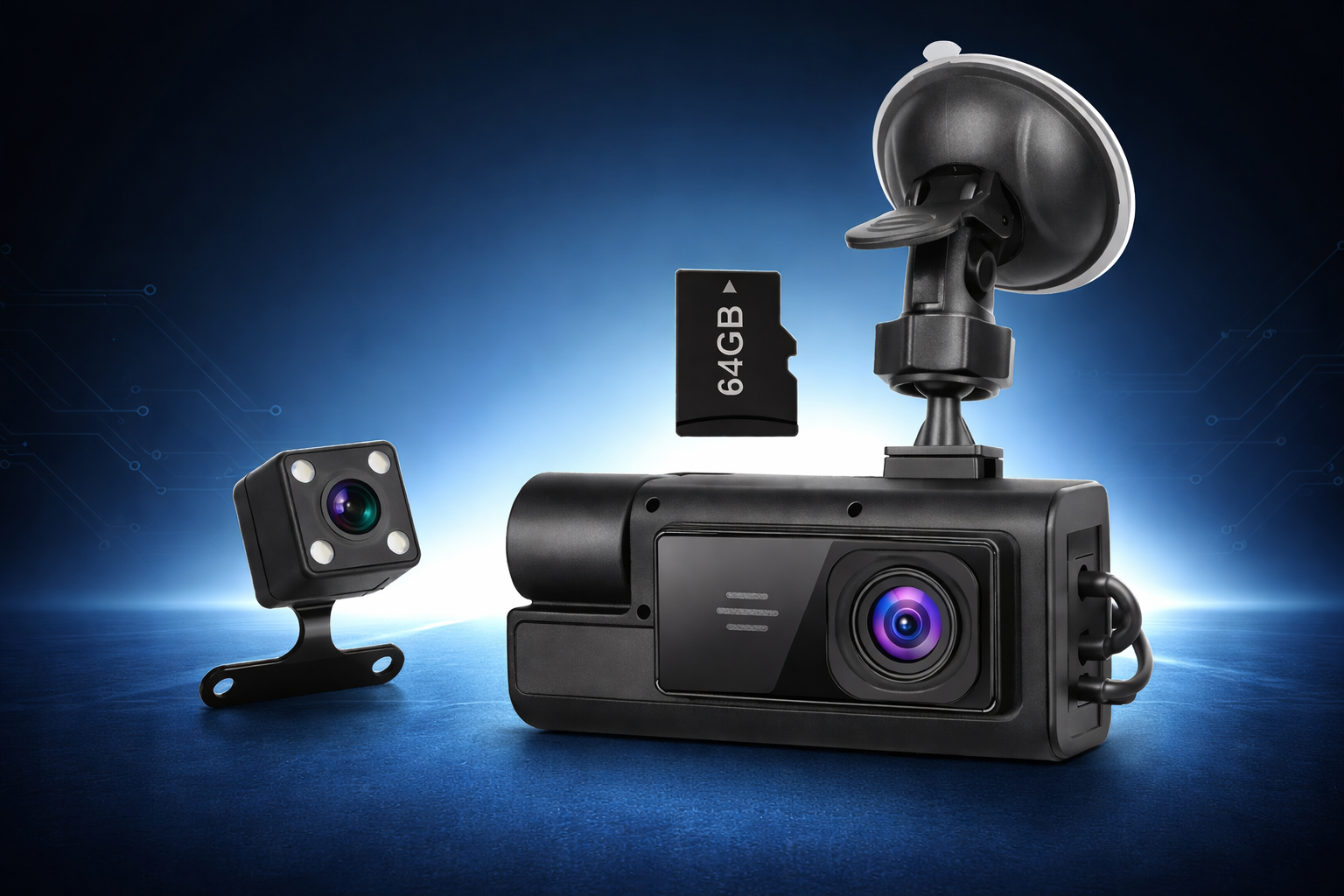 DriveGuard 3-Channel WiFi Dash Cam (1080P Front, Rear & Interior)