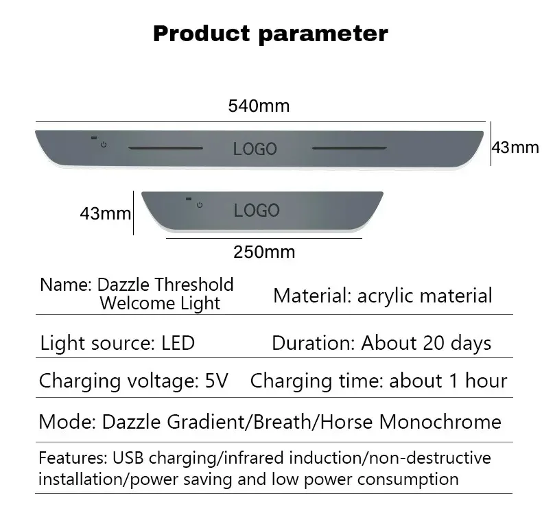 🚗 Custom LED Car Door Sill Light (Infrared Sensor | RGB | USB Rechargeable)